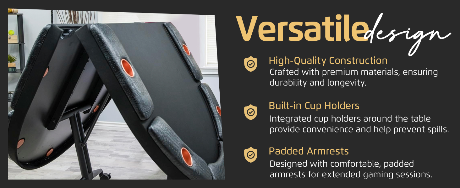 It’s designed for a comfortable multi-player setup (up to 10 seats depending on your configuration) so everyone has space for chips, cards, and drinks.